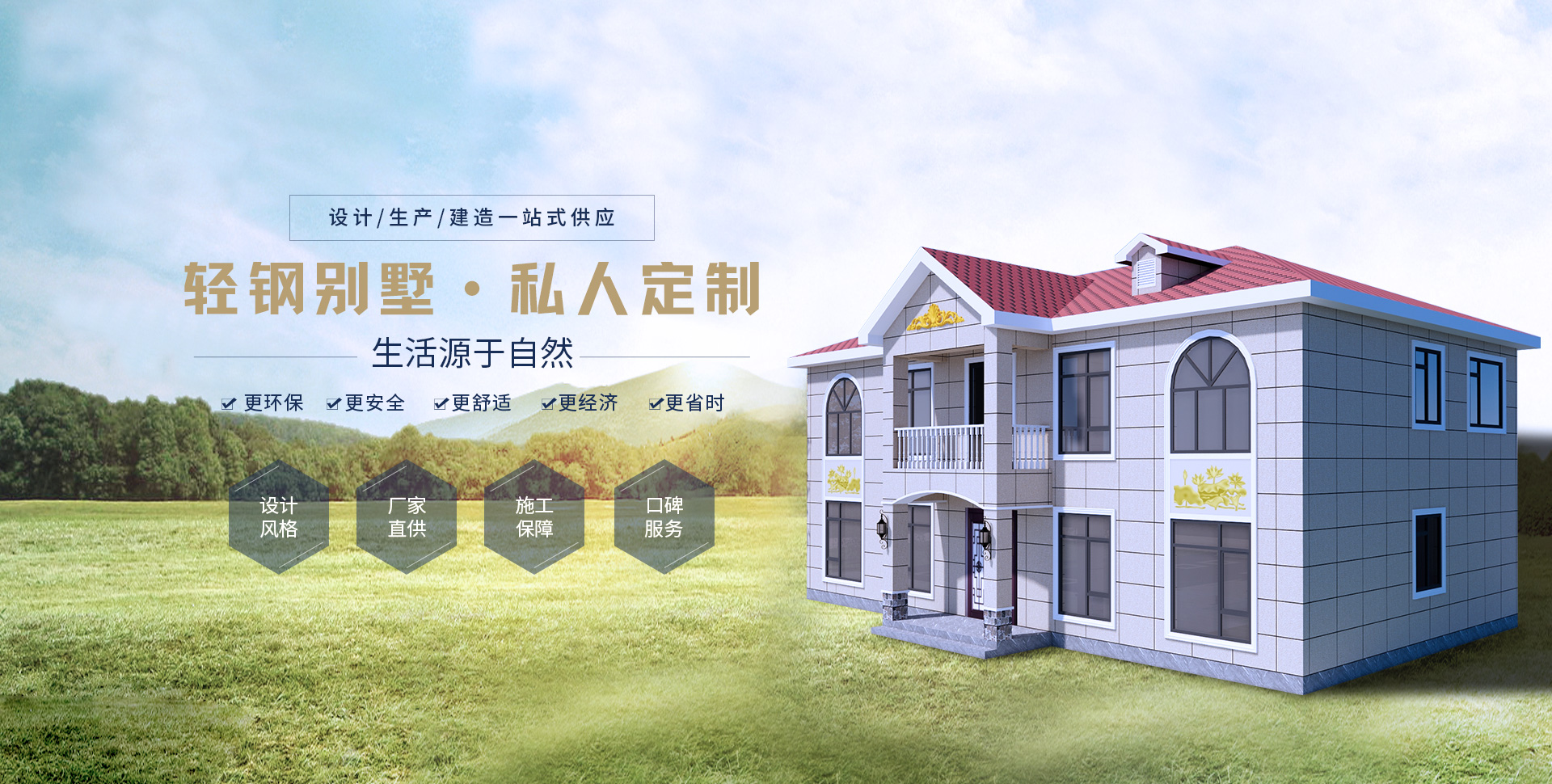 健康指標(biāo)輕鋼別墅的材料均為綠色建材,而且采用干作業(yè)施工,保護(hù)環(huán)境和減少污染,滿足生態(tài)環(huán)境要求,為人們提供了健康舒適的居住環(huán)境。